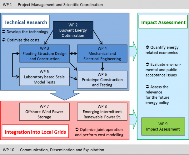 In line with the work programme the project aims to develop a novel, very effective, highly available, very durable, sustainable and safe solution for distributed energy storage. Buoyant Energy is an offshore concept, which is based on the pumped hydro storage power technology. This technology will be transferred from mountainous regions to the sea.